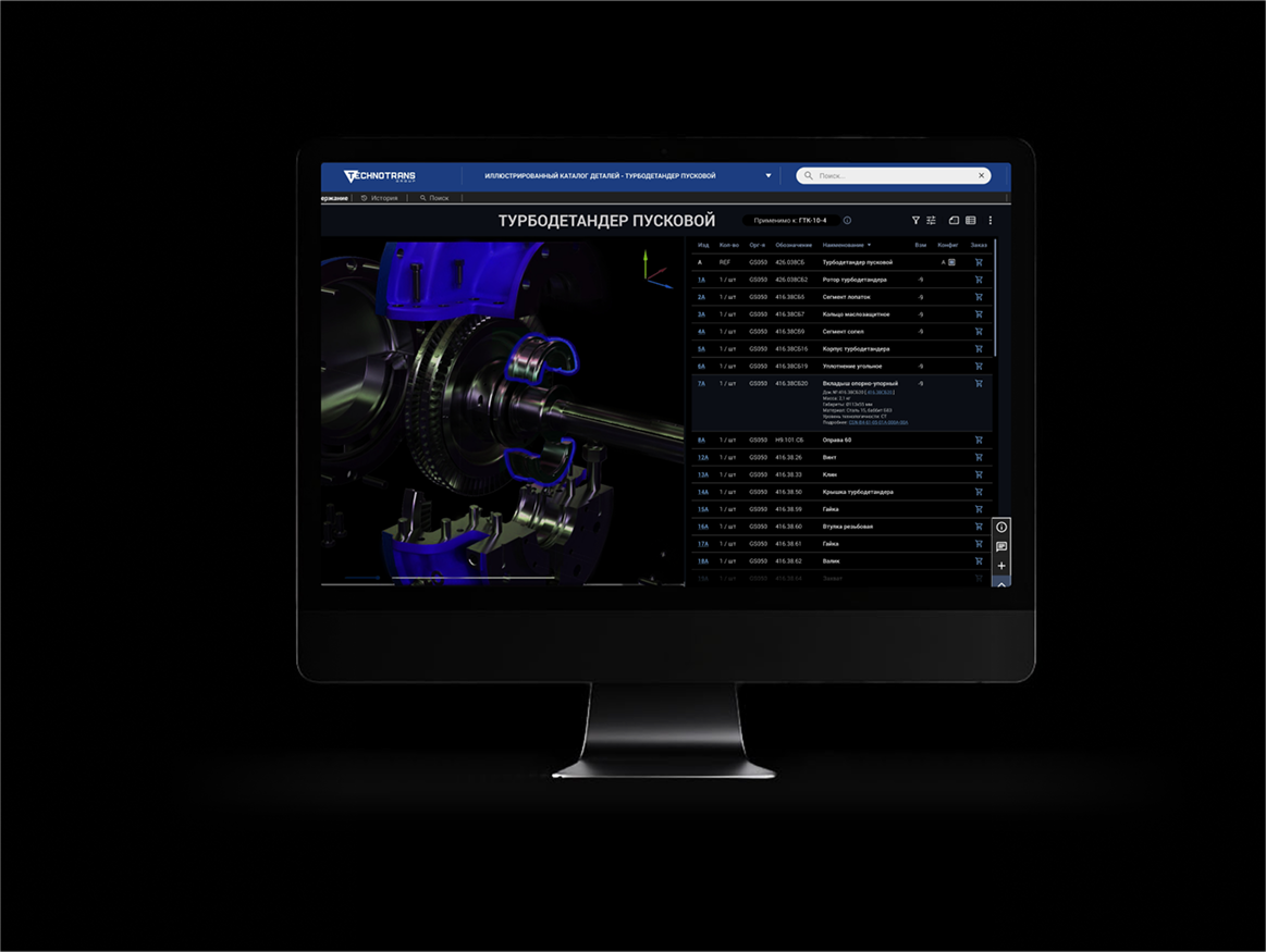 Каталог деталей интегрируется в IT-инфраструктуру, что позволяет автоматизировать заказ запасных частей в ERP-системе, используемой у Заказчика (1С, SAP и др.).